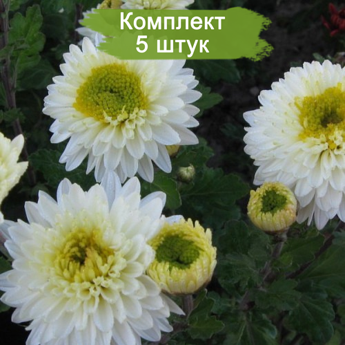 Саженцы среднецветковой белой хризантемы Инга (Inga) (с желтозеленой серединой ) - комплект 5 шт.